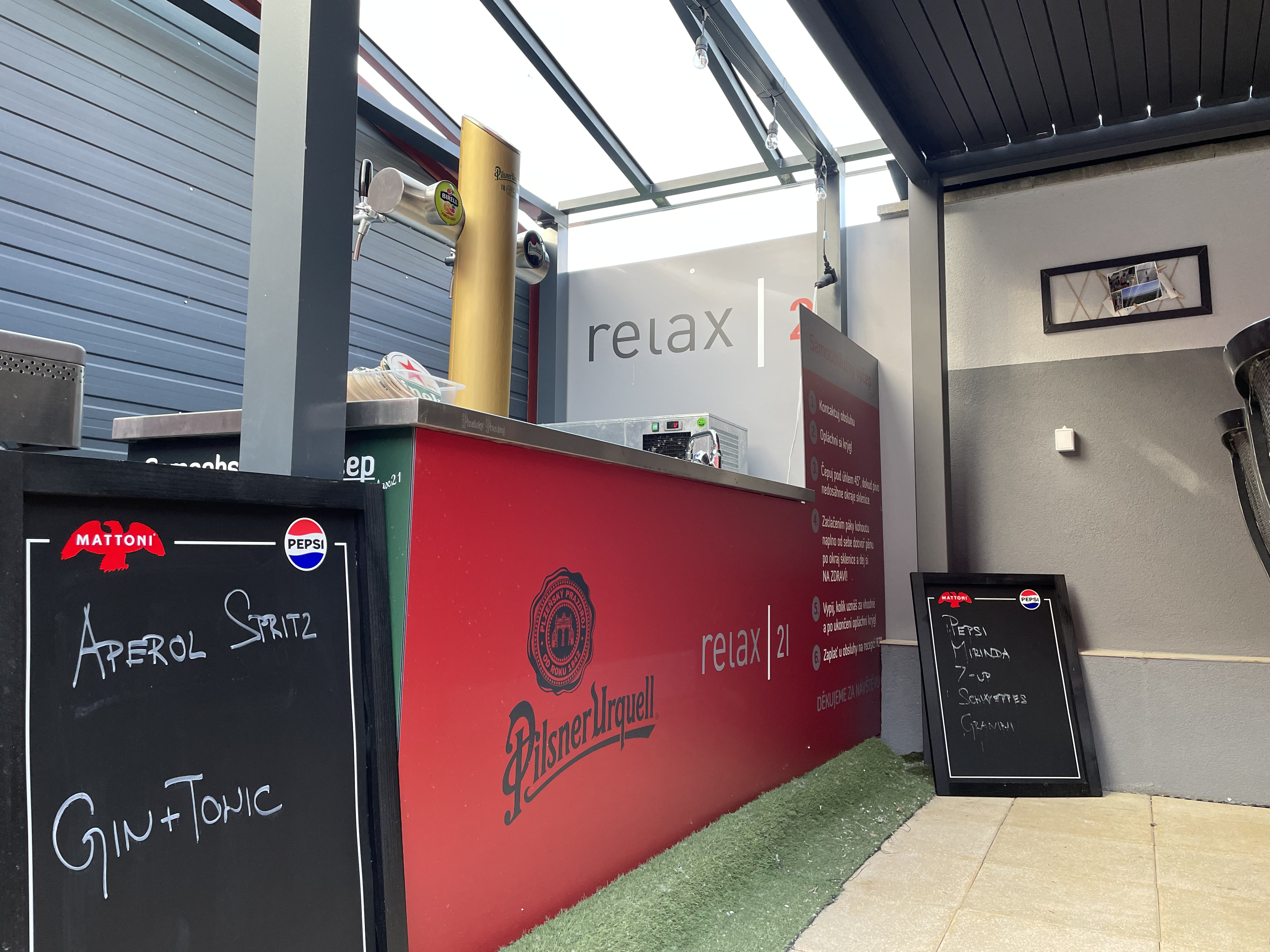 Zahrádka je vybavena novým samoobslužným výčep, díky kterému si můžete dopřát čepovanou Pzeň nebo nealkoholický Birell pomelo-grep.
